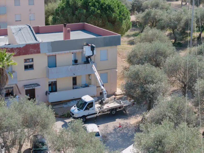 Per “lavori in quota” si intendono tutti gli interventi edili che si svolgono oltre i 2 metri dal suolo stabile. Rientrano in questa categoria: manutenzione e ripristino delle facciate, riparazione di tetti e grondaie, consolidamento di cornicioni e frontalini, interventi su balconi e prospetti, installazione di impianti esterni. Si tratta di attività che richiedono competenze specifiche e rispetto rigoroso delle norme di sicurezza. Per questo ogni lavoro è eseguito da tecnici qualificati e dotati di DPI professionali, formati per operare in totale sicurezza.
